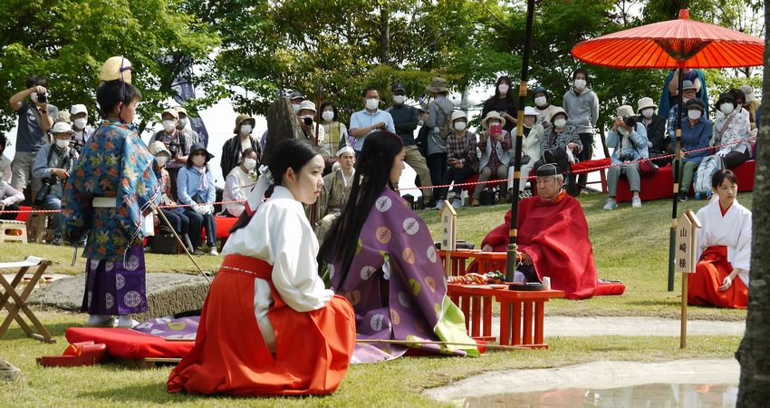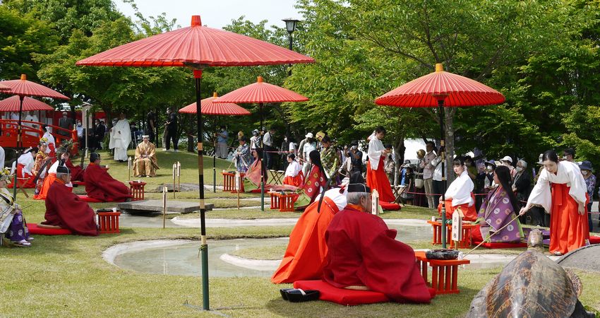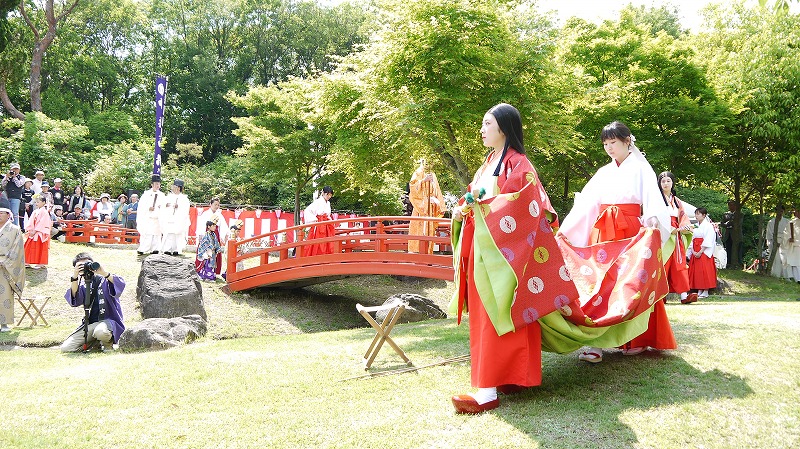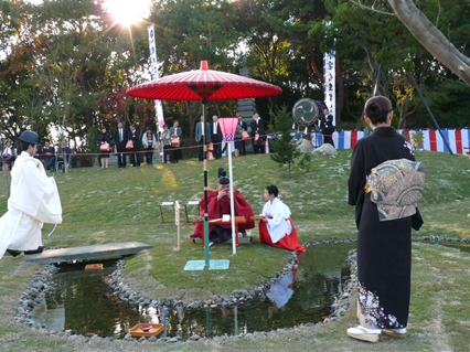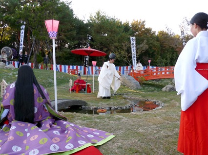 代継宮では、当宮鎮座1050年祭を記念して宴用に庭園を造園し、その落成式も兼ねて、平成22年11月20日(日)に、熊本県で初の『曲水の宴』を開催する運びとなりました。宴の様子をご覧ください。